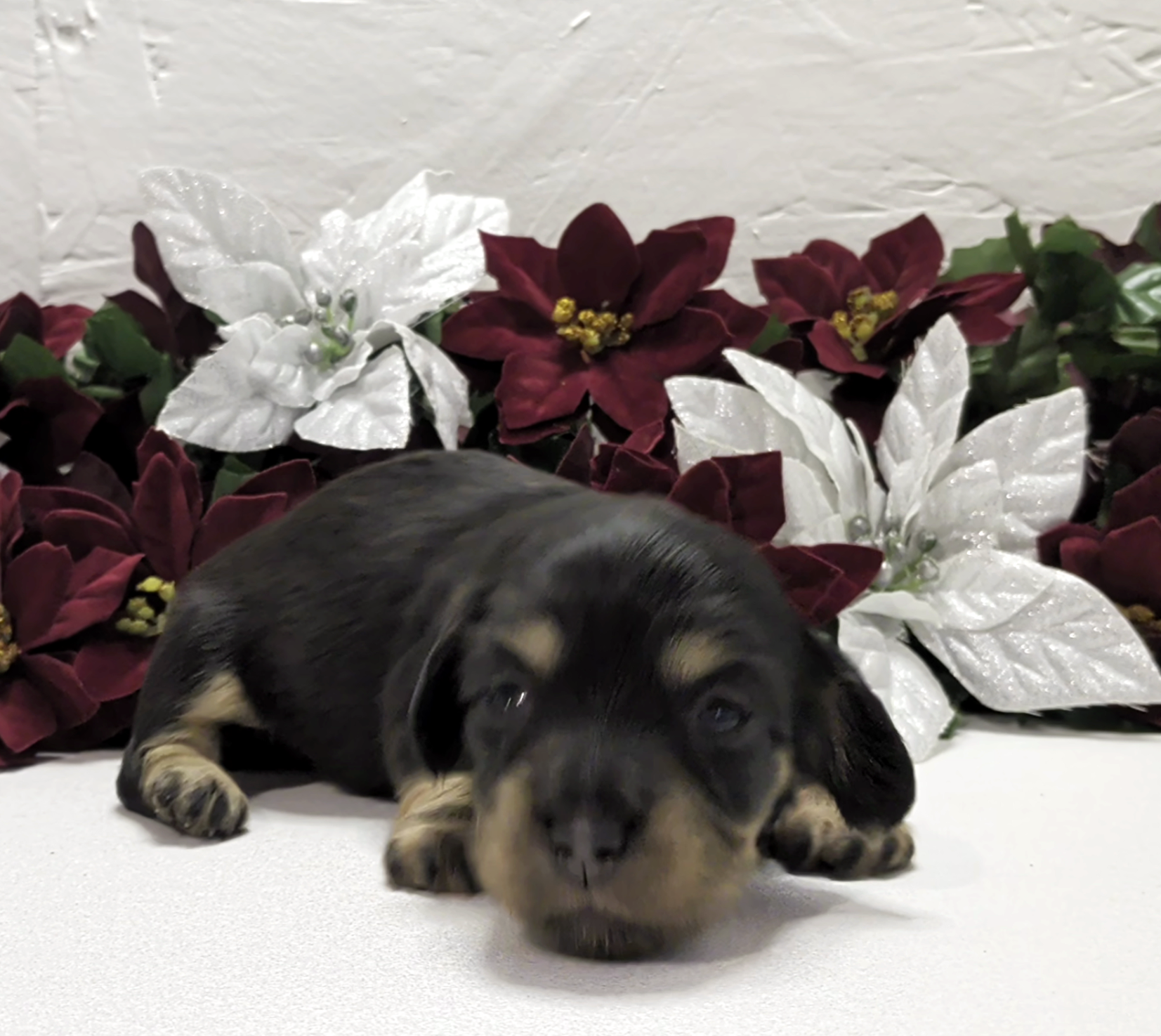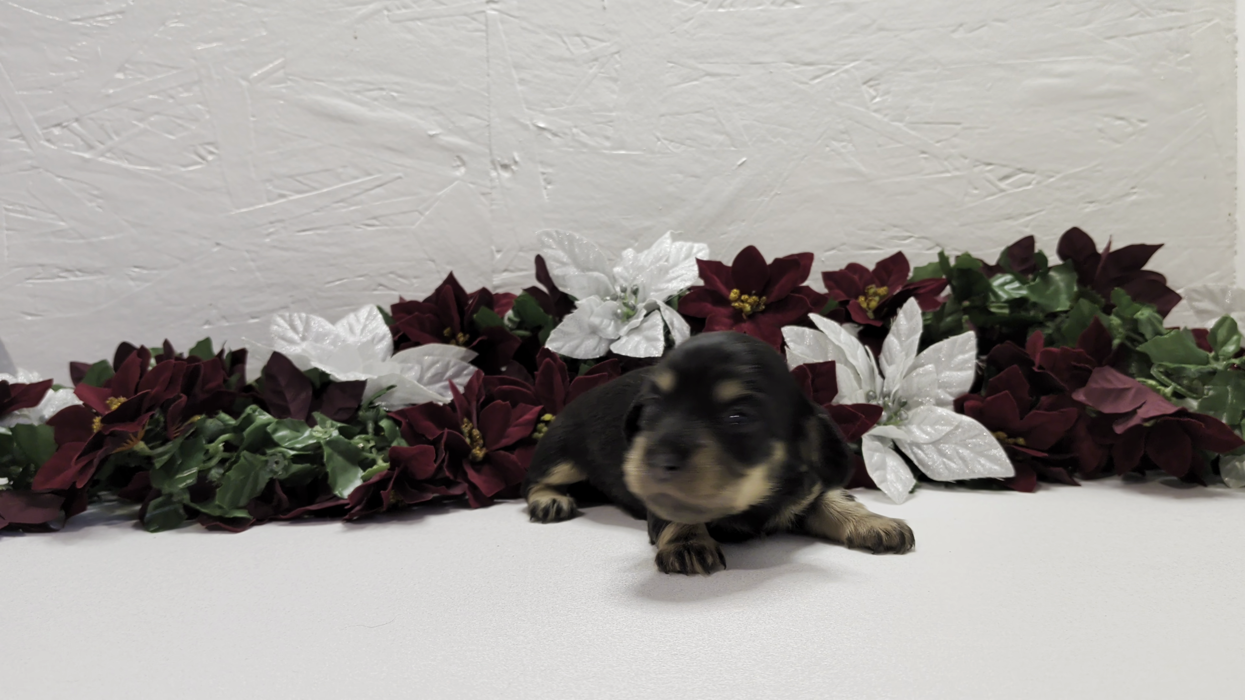 Dolly has a cream male, 2 black and cream females available, all are long hair. Male is $2500 and females are $2300 AKC limited